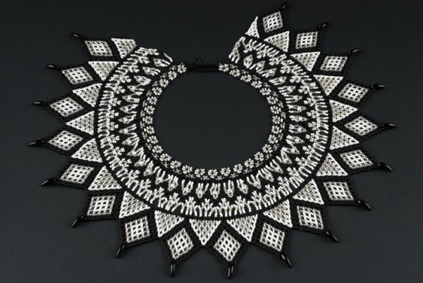 Embera Chami Necklace handmade with Chaquira Mostacilla stones in beautiful black and white tones. Necklace that represents the beauty of the Embera Woman and the sound of the wind.