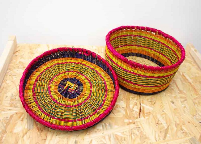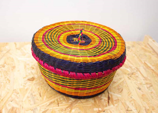Canasta panera (para guardar el pan que va a la mesa) elaborada en esparto, que es la fibra que se extrae de esta planta que se cultiva en los manglares de diferentes regiones de colombia, Tolima, Boyacá, entre otras. Esta fibra es usada para realizar sombreros, correas, bolsos, canastos, y mas materiales, despues de vivir un proceso de varios dias para su coloracion y secado.